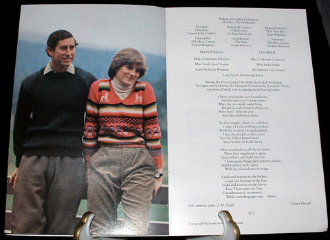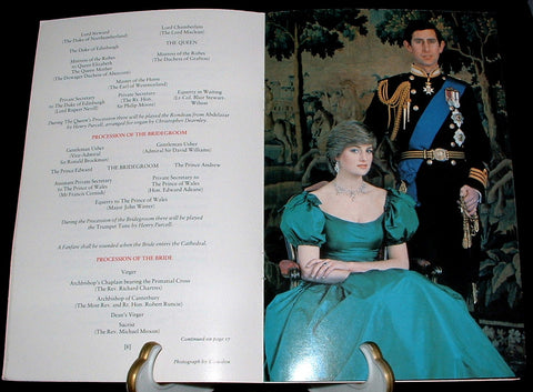 This is an original program or programme for the royal wedding on July 29, 1981 of Prince Charles and Lady Diana Spencer of England at St. Paul's Cathedral, London.