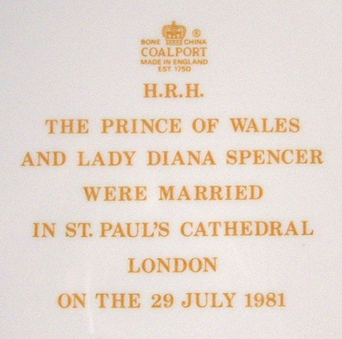 This is a prettyroyal commemorative plate made to commemorate the wedding of Prince Charles and Princess Diana in 1981 by Coalport China, England .