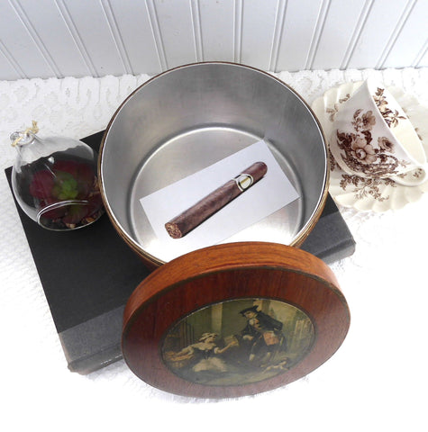 English Humidor Biscuit Box Wood Veneer Aluminum Liner 1930s Cries Of London