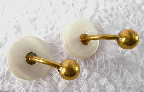 Cuff Links Mother Of Pearl Ball And Post Back 1900 Antique Gold Plated MOP Cufflinks