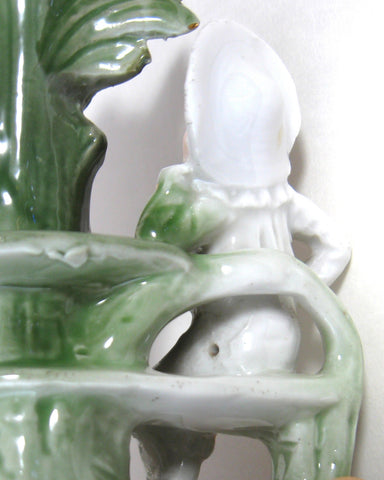 Victorian Spill Vase Pair Fairing Boy Girl Souvenir German 1870s Mantle Decor