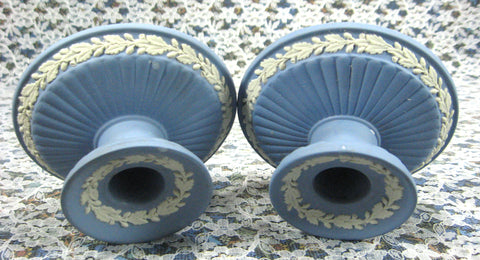 Pair of Candle Holders Wedgwood Blue Jasperware 1959 Dining Tea Party