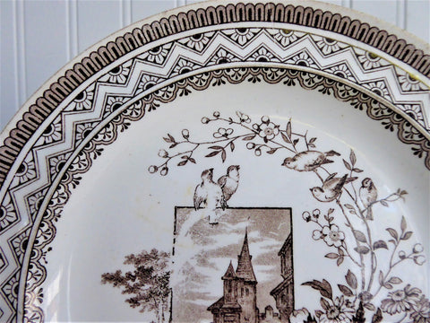 Wedgwood Edinburg Aesthetic Plate 1882 Brown Transferware Birds Flowers Castle