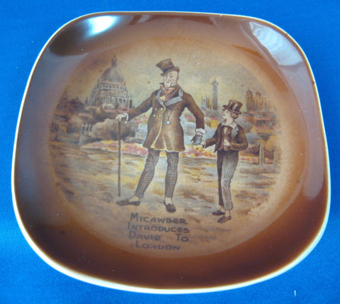 The dish says Mr. Micawber Introduces David To London. A fun piece in very good +++ used vintage condition with no chips or cracks.
