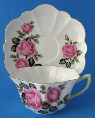 Shelley England Pink Rose Cappers Rose Cup And Saucer Stratford Shape 1959-1966