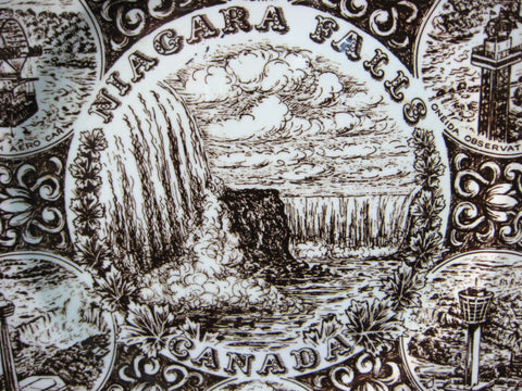 Niagara Falls Canada Brown Transferware Souvenir Plate 10 Inches Wood 1940s