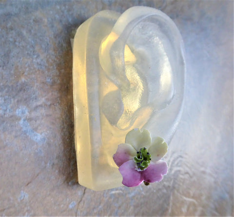 The hand made figural flower earrings features pink and yellow Wild Rose or maybe a Dogwood flower measuring approximately one inch in diameter.