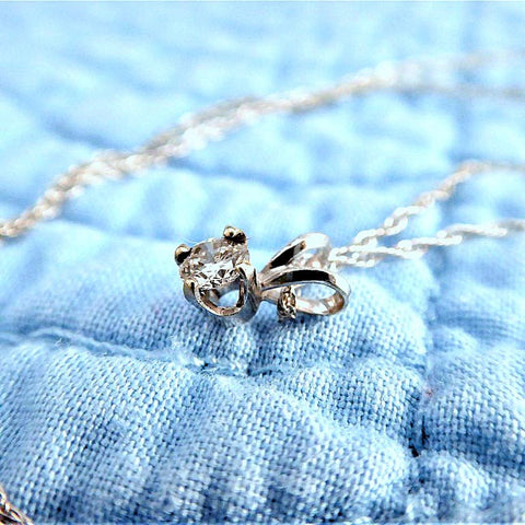 This is a sweet Diamond solitare pendant necklace of genuine round brilliant cut natural Diamond with a total carat weight of 17.5 points or close to a fifth of a carat.