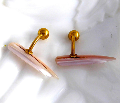 This is a pair of mother of pearl antique Mother of Pearl or shell bar or spar cuff links or cufflinks made in the USA in 1900-1910s.