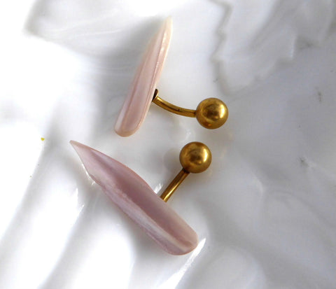 Antique Cuff Links Mother Of Pearl Bar Spar Ball And Post Back 1900 Gold Filled