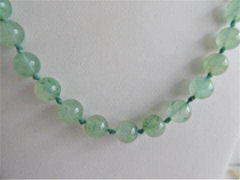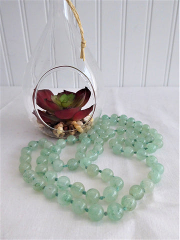 Apple Green Jadeite Knotted Bead Necklace 32 Inches Long Jade Beads Celadon