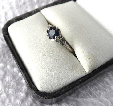 This is a gorgeous London Blue Sapphire vintage estate ladies ring made of 18kt white gold from the 1920-1930s.