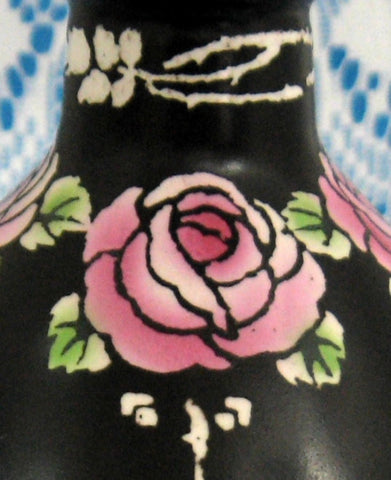 Art Nouveau Vase Shelley China Black Roses Art Pottery Antique 1920s Matte Black