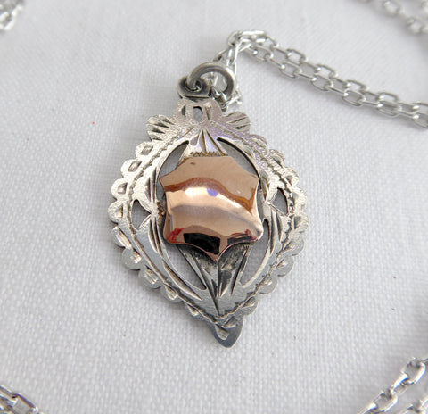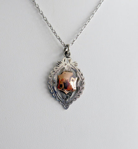 English Hallmarked Pocket Watch Fob Sterling Silver 10ct Rose Gold Hand Pierced 1915