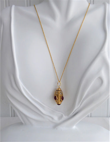 This is a vintage 18kt gold charm or pendant with 5 cabochon genuine Carnelians hand set in bezels in an Etruscan style lantern shape that was acquired in Rome, Italy in 1967.