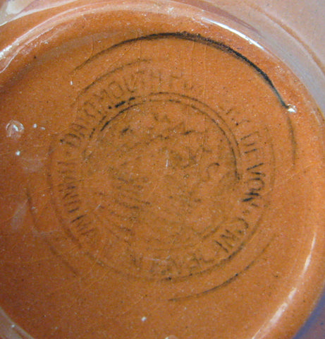This little motto ware or mottoware dish or bowl was made by the Dartmouth Pottery of Devon, England and bears the following motto: Waste Not Want Not and the traditional cottage.