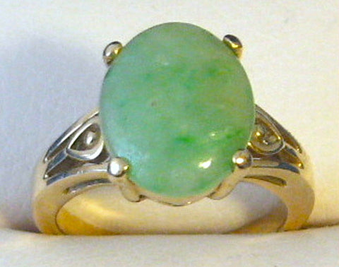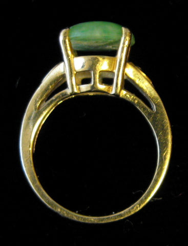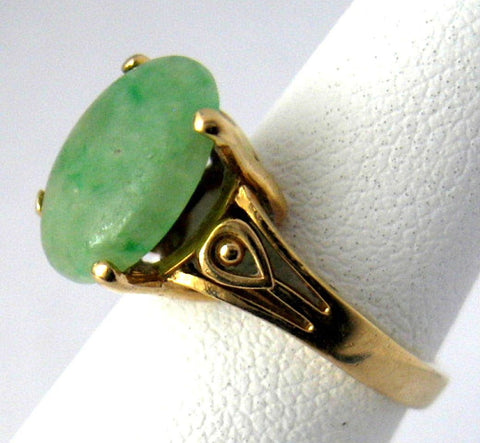 Ring 14k Gold Apple Green Jade Natural 3 Carats 1970s Oval Chinese Jadeite