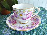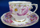 Roslyn Ambleside Cup And Saucer Pink Poppies Daisies 1950s English Bone China