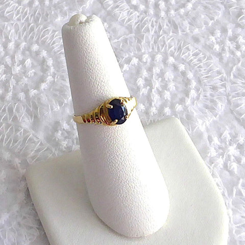 Sapphire Ring 14k Oval Blue Sapphire Solitare 3/4 Carat 1970s 14kt Gold