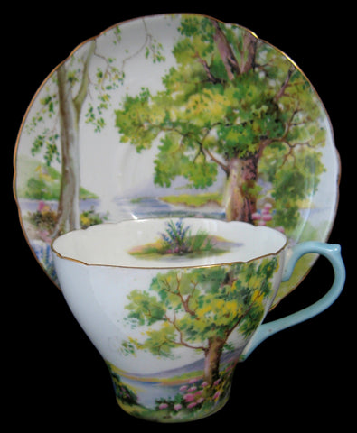 Shelley Woodland Cup and Saucer Cambridge Shape Landscape Teacup 1950s