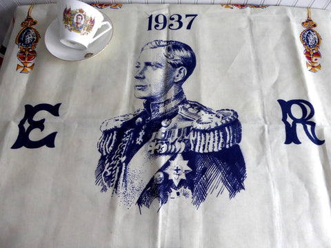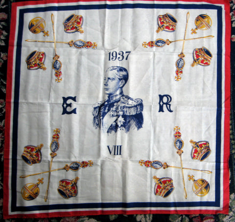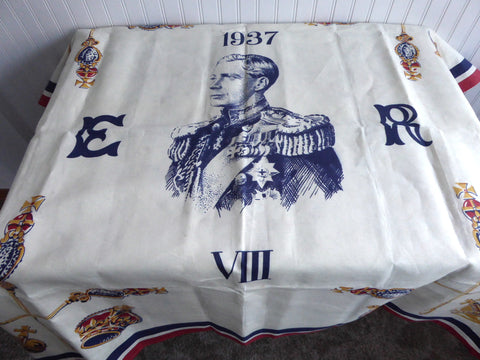 This is a very rarely seen souvenir tablecloth, table cloth or bridge cloth made to commemorate the coronation of King Edward VIII of England on May 12, 1937.