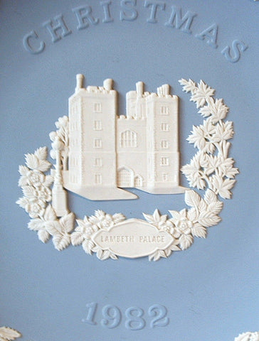 Wedgwood 1982 Lambeth Palace Christmas Plate Original Box Blue And White Jasperware